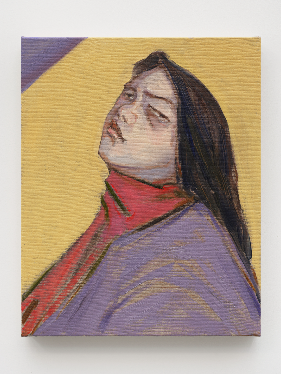 Li Ran, Yellow-Purple-Left-Woman (黄紫左女), 2023, Oil on canvas, 50 x 40 x 3.6 cm, 19 5/8 x 15 3/4 x 1 3/8 in © Li Ran. Courtesy Lisson Gallery