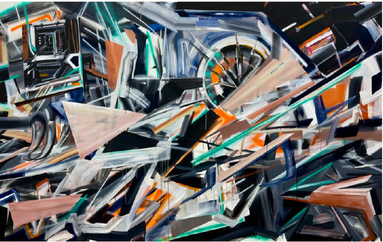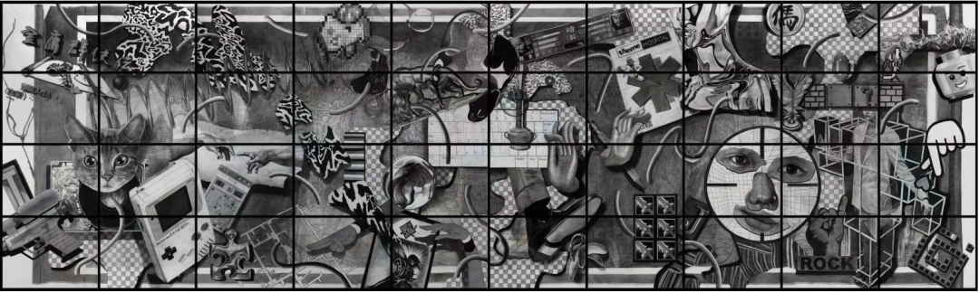 例如被他称为“汽车抽象”的袁乐的作品,与他本人的生活和喜好密不可分;卢琳在画面中通过人与自然、石头景观之间所折射出的本能状态;任正楠在塞尔维亚旅游期间随机摄取的碎片化图像信息所传递出的模糊性;凌海鹏在深居简出的生活状态中打破水墨媒介边界,以哲学思辨和逻辑性来构建自己的创作方法论;Cranehehe用插画的形式真实反映自我当下生活状态等等。在这样的场域下,当代青年艺术家不断向前游动,从而拥抱一种本能的状态,这就是“流动的本能”。