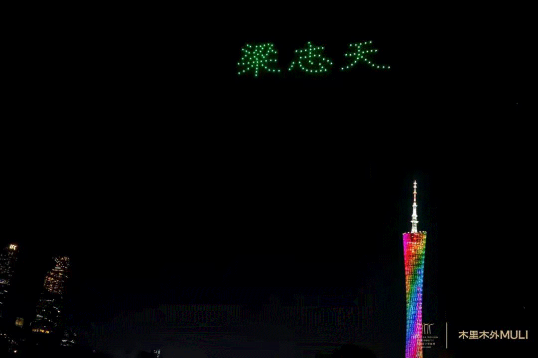 2021年12月,木里木外以盛大仪式点燃广州设计周的高光时刻,致敬华语设计的开拓者,千架定制无人机盛放于珠江夜空的传奇还余影绕空……