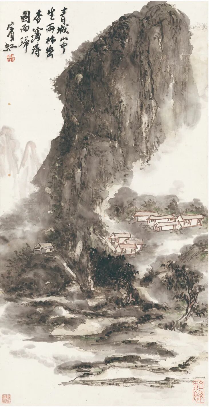 黄宾虹 青城山中坐雨 86.4x44.6cm 浙江省博物馆藏