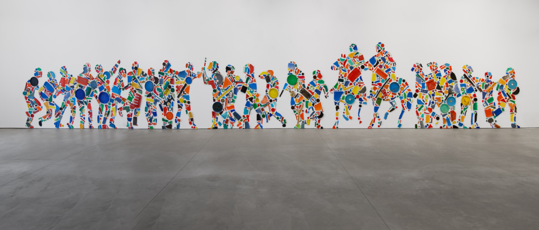 《Riot》宏大的尺幅会让人想起帕特农神庙的传统浮雕饰带,艺术家运用浮雕这一传统的空间交互手法,以叙事为导向描绘了帝国战争与社会体系崩溃的图景。这些对艺术史的援引不仅为作品提供了历史视角,而且还深刻地联系着当今世界日渐兴起的威权主义和警察暴力问题。作为克拉格深入研究工业材料的早期范例,这件作品运用了不同塑料制品的生动颜色和既有形状,实现了一座生动的、沉浸式的图像雕塑。