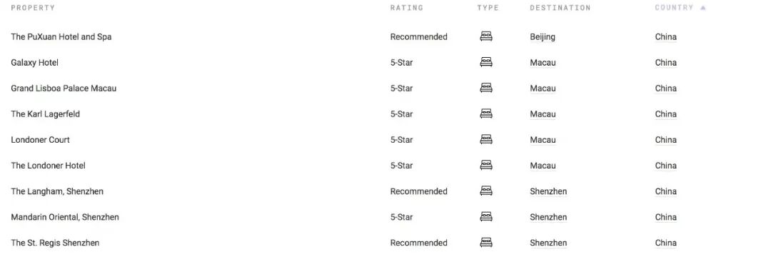 本次上榜的1956个项目中,酒店共有1378家。其中大中华区共有47家酒店获得五星,50家酒店获得四星,31家获得推荐。