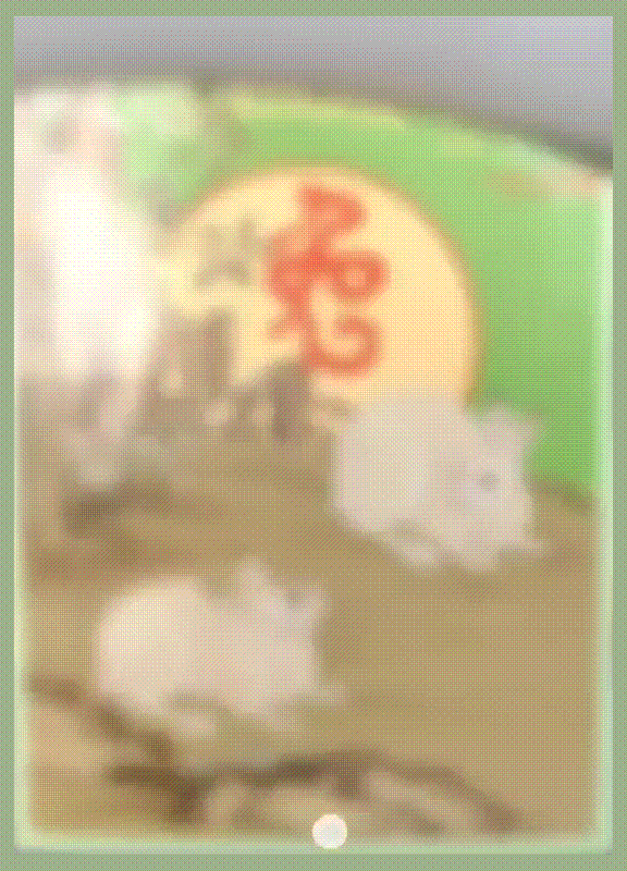 一轮满月中的“兔”字系故宫博物院藏石鼓文字体,古朴大气之中别具灵动。