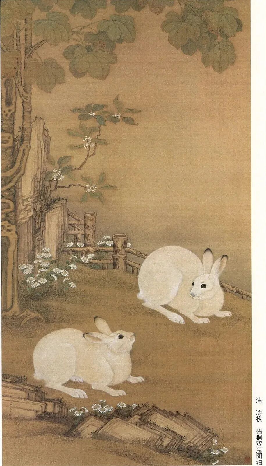 封面源于故宫博物院的绘画藏品——清代宫廷画家冷枚的《梧桐双兔图》轴。双兔在梧桐树下回首对望,氛围静谧祥和,寓意花好月圆。
