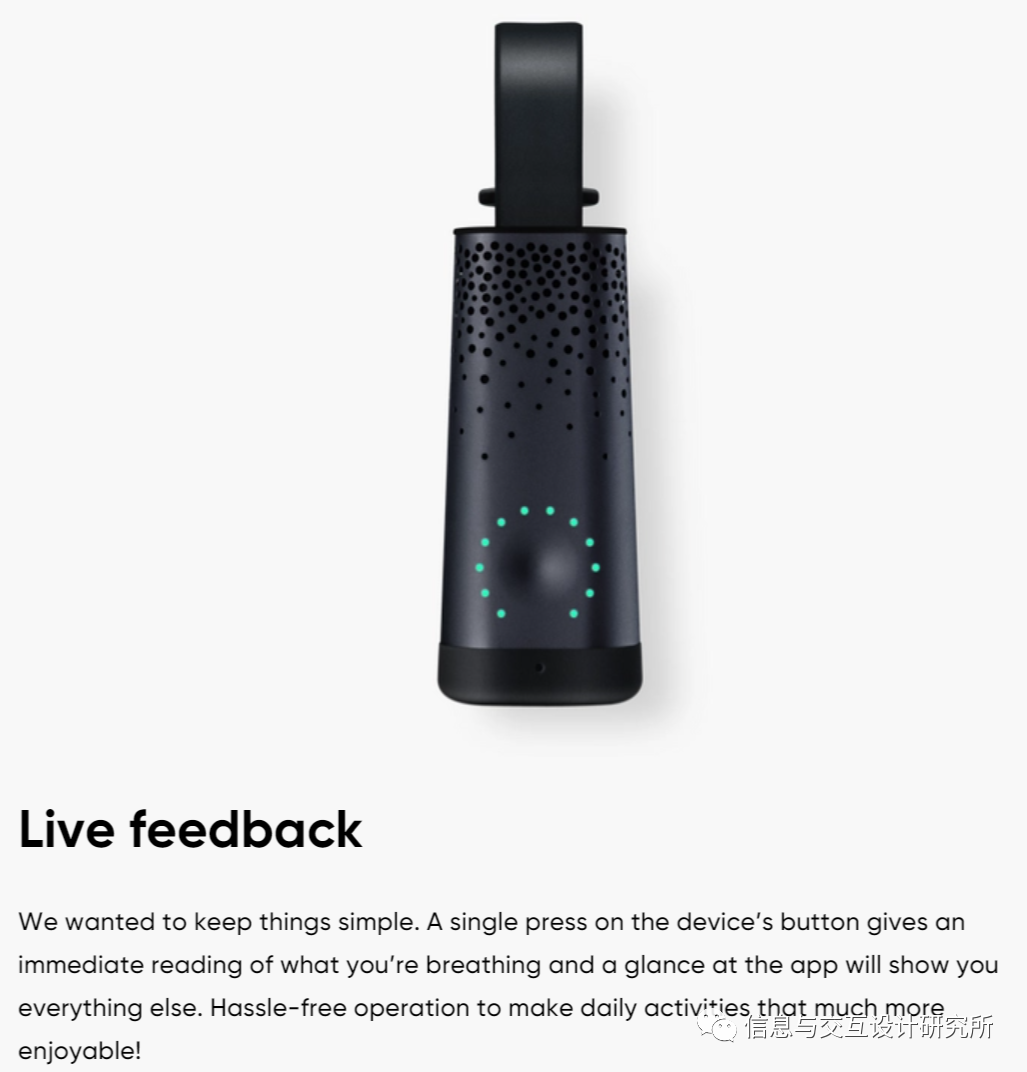 实时反馈。极简设计,设备下方被LED环绕的凹陷处即为交互按键,按压后,可在APP中获取实时空气质量数据。