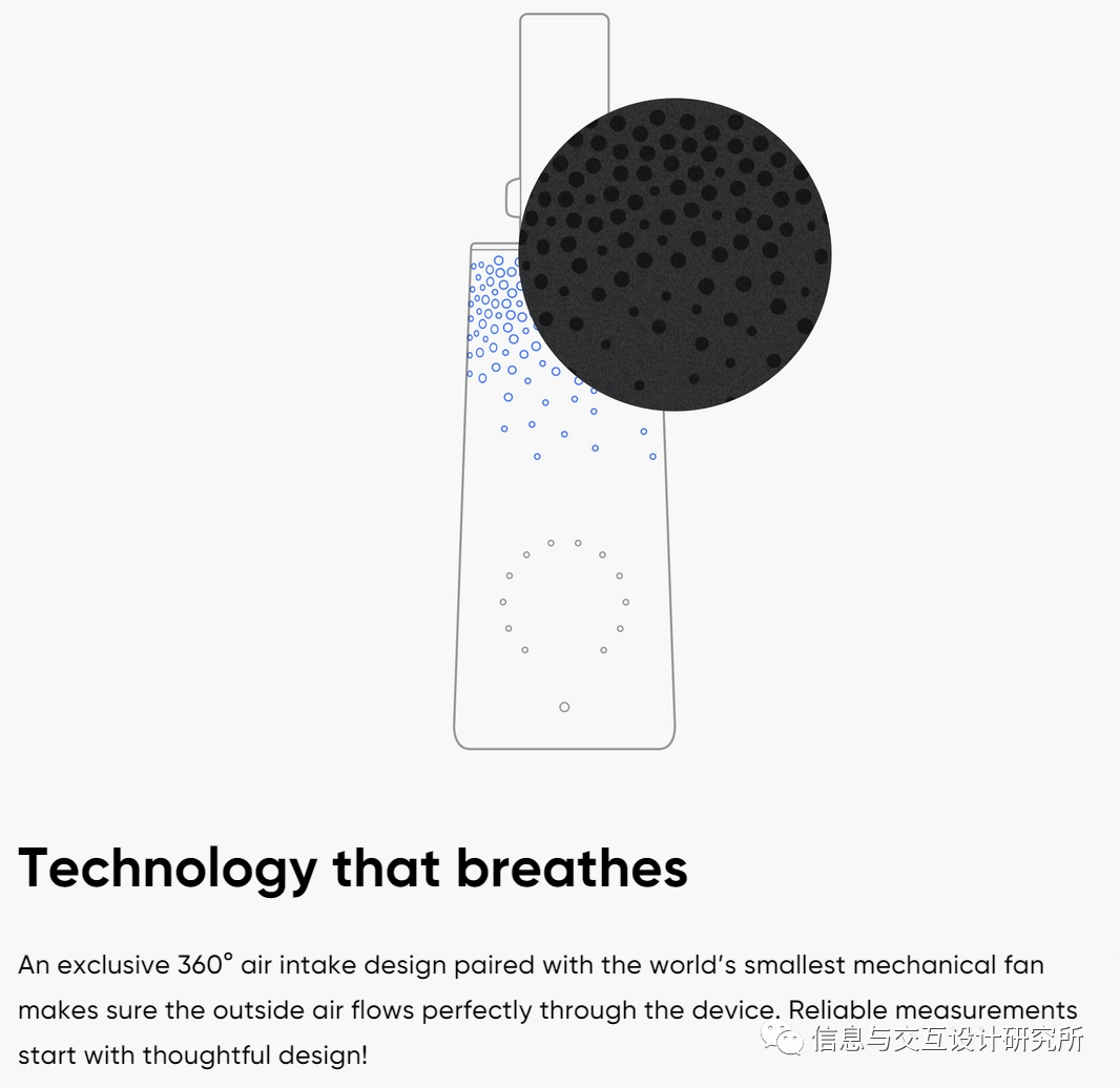 可以呼吸的技术搭配全世界最小的机械风扇,确保空气质量信息的精准性。