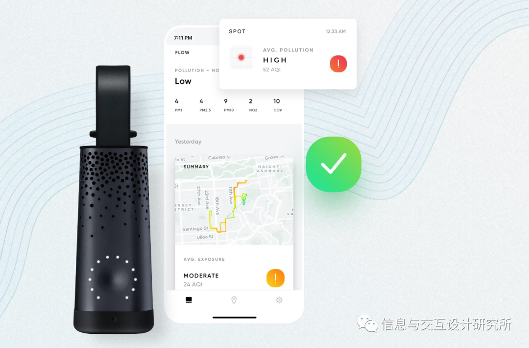 呼吸,感受沁心空气在心肺间流动。(Take a breath,feel the Flow)”这是PlumeLabs官网对该产品的推广语。FLOW2是一款空气监测仪,根据产品内部特质的空气质量传感器与协同APP,预测空气污染指数,为用户追踪动态数据、制定行径路线。