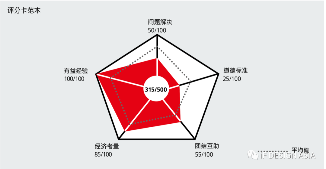 iF评分卡将作为奖项评审评选的依据,评审将使用这些标准为参赛作品的各面向进行评分。