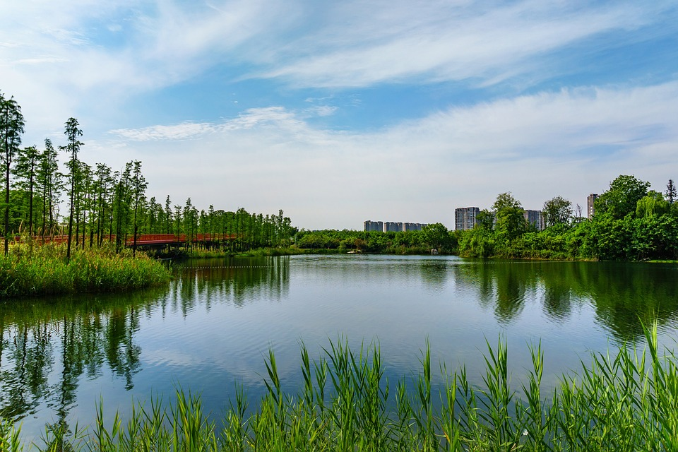 “天府绿道”将众多公园绿地节点“串珠成链”。例如在高新区的部分,就集中了2400亩的锦城公园、1400亩的桂溪生态公园、450亩的交子公园等多个公园,在有城市的地方就能看见公园,在公园中就能望见高楼。