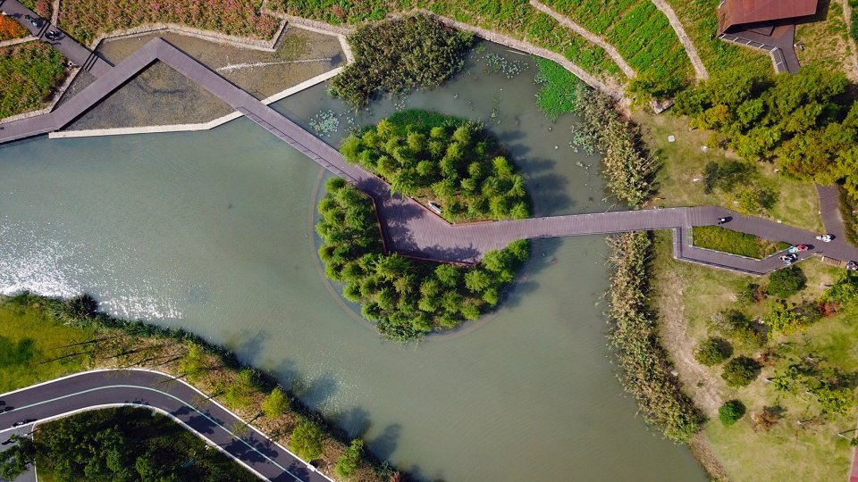 该绿道最大的亮点是引入了梯田湿地,既解决了场地高差问题,又软化了原来河道空间的生硬感,并在水中植入树岛,让水流慢下来,同时增加生物与水体的接触面,净化城市地表径流,并使河流的自净能力得以加强。