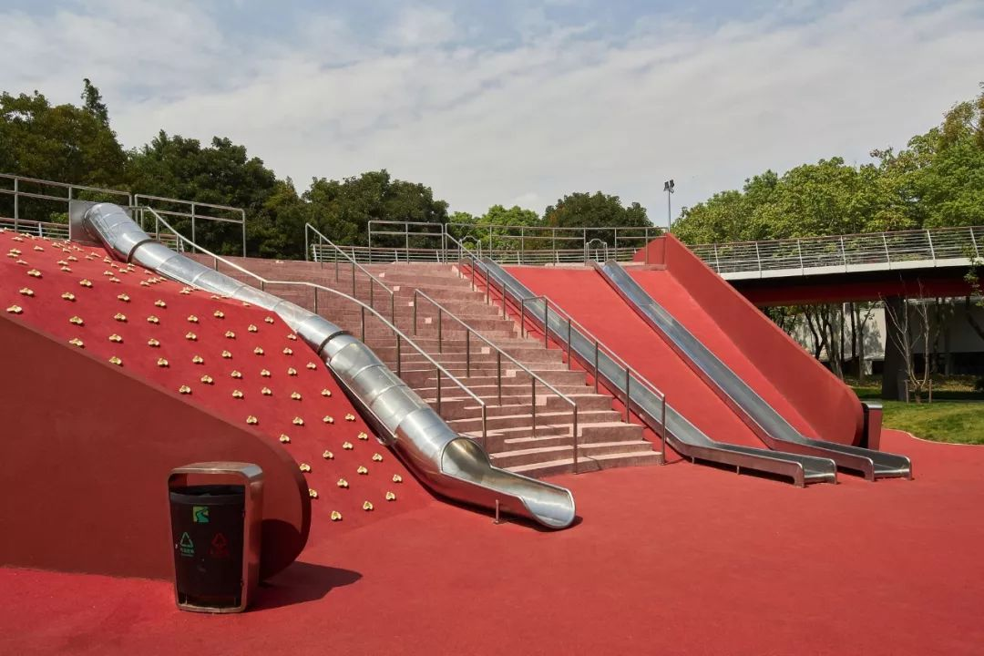 江阴绿道不仅仅是步道,它把自己变成了一座游乐场,自带秋千、滑梯等娱乐设施,还有圆形剧场可供表演与休闲使用。