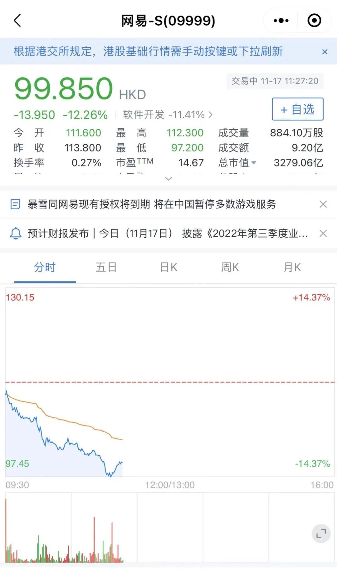 受此消息影响,网易股票一度跌超10%。目前双方洽谈进度并不顺利,或面临解约风险。