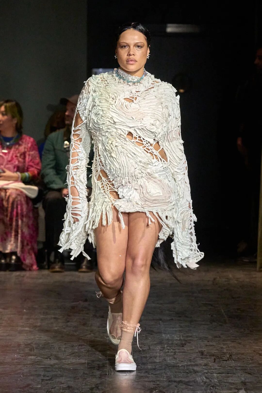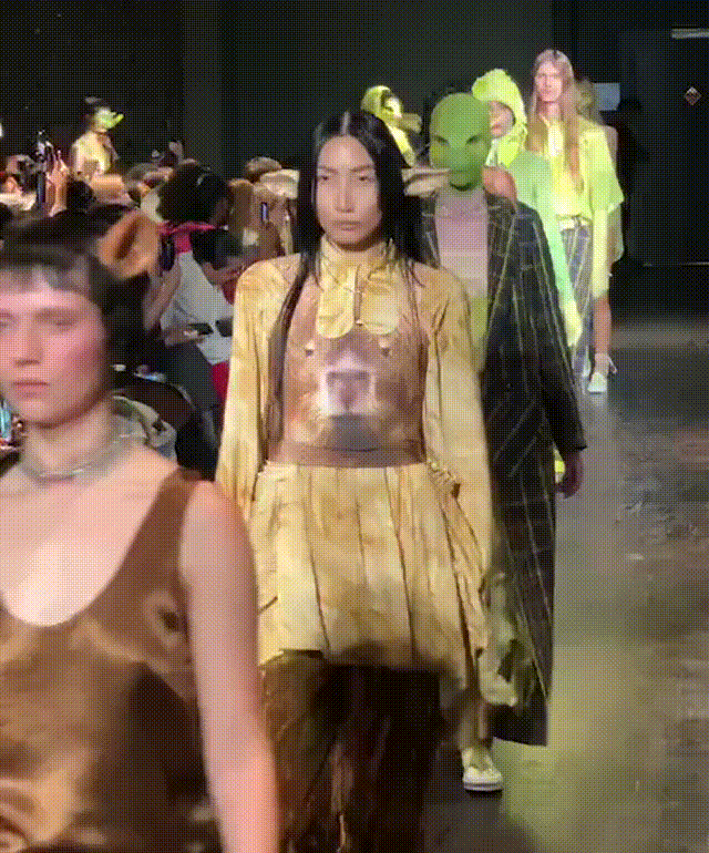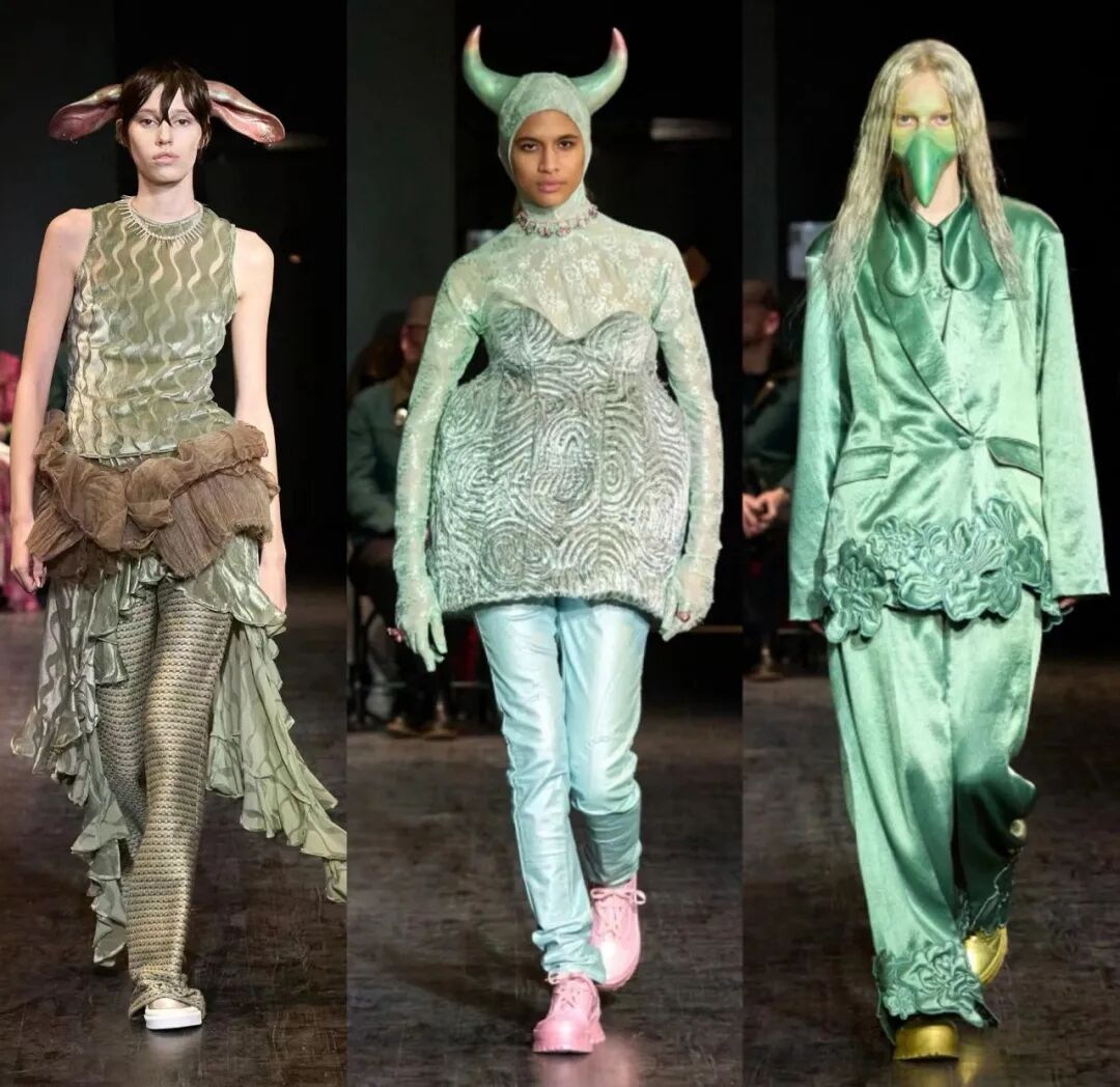 直击2023纽约秋冬时装周!Collina Strada 2023AW秀场大变“动物园”!设计师以“Please Don't eat my Friends”为主题,打造充满层次的造型,模特们通过Isamaya Ffrench制作的动物肢体道具来扮演动物,打造趣味动物乐园派对。