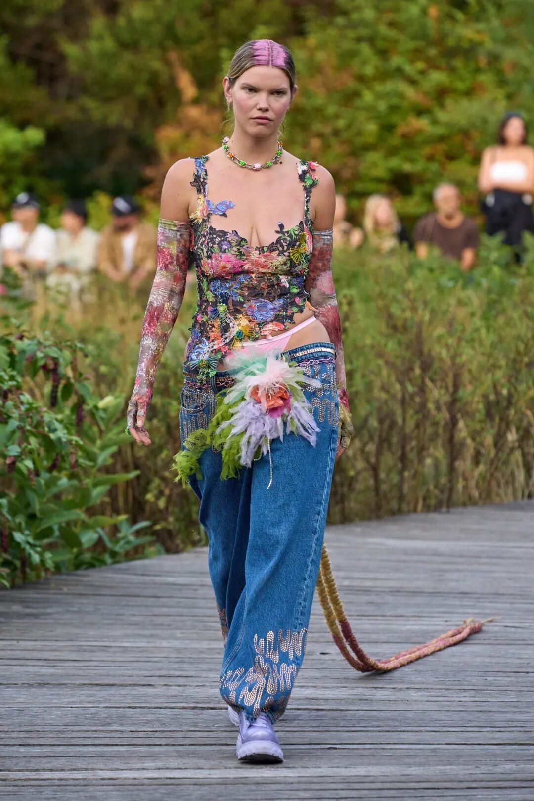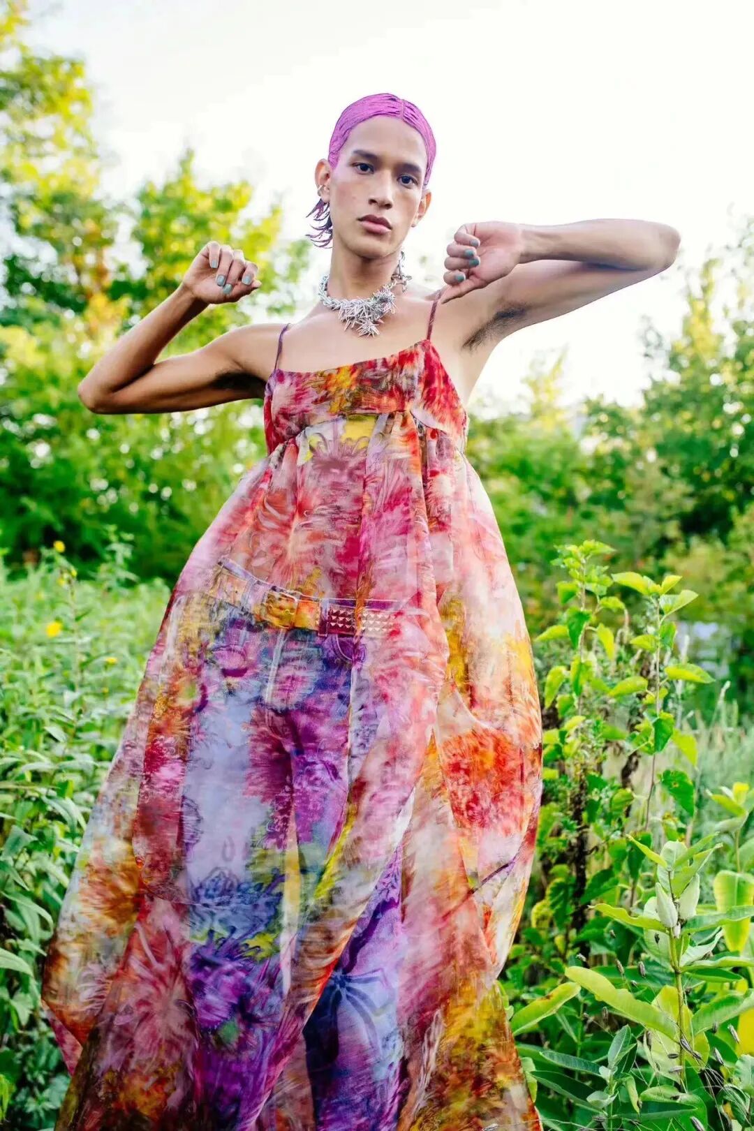 Collina Strada很好地平衡了新颖性和实用性,色彩绚丽的衬衫、卫衣、吊带和有古怪印花的内衣。既概念化又特立独行,她艺术的完整性、可持续性,以及为那些常被时尚忽视的人提供平台的奉献精神依旧处于时尚的前沿。