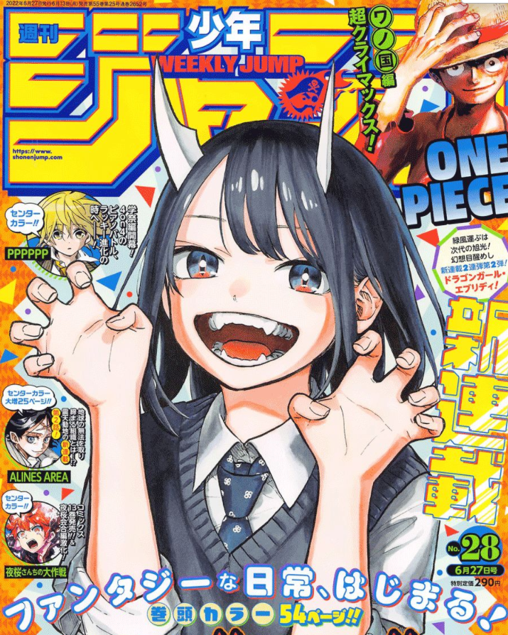 这是集英社新推出的作品,原本看标题的龙龙字样还以为是热血故事,结果看了才发现,原来就是JK生活的日常,只是这JK有点特殊,她老爸是条龙,所以自己也变成了半人半龙的混血,头上长出了角,偶尔还会喷火。