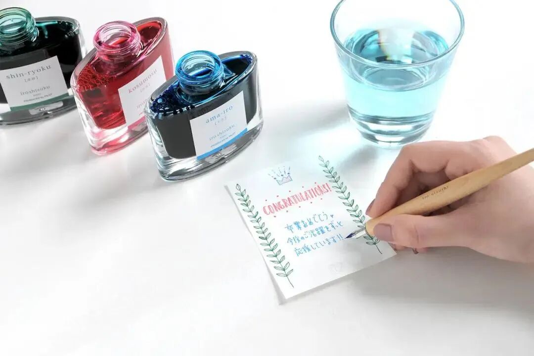 一款蘸水钢笔设计,蘸一次墨水,能写半页纸!笔尖中间有一条缝,可以随时观察墨水量。书写时可以根据使用的力度产生不同粗细的变化,让写作变得更有趣、更轻松!笔杆透明简约,还有一款木制笔杆。