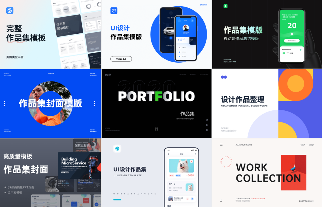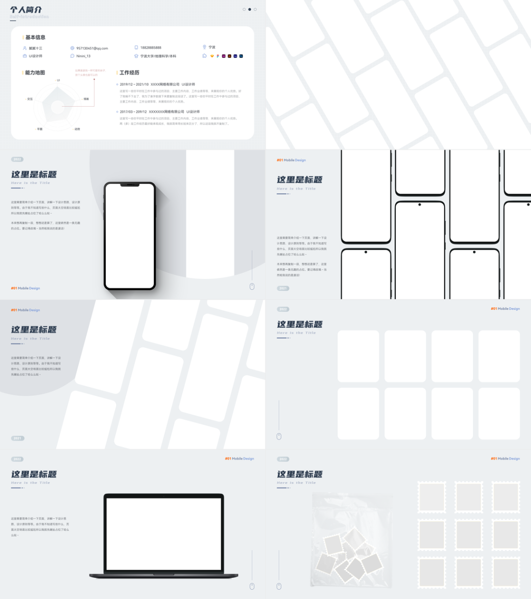 风格简约、结构清晰的一套作品集模板,可以帮你快速搭建内容框架。