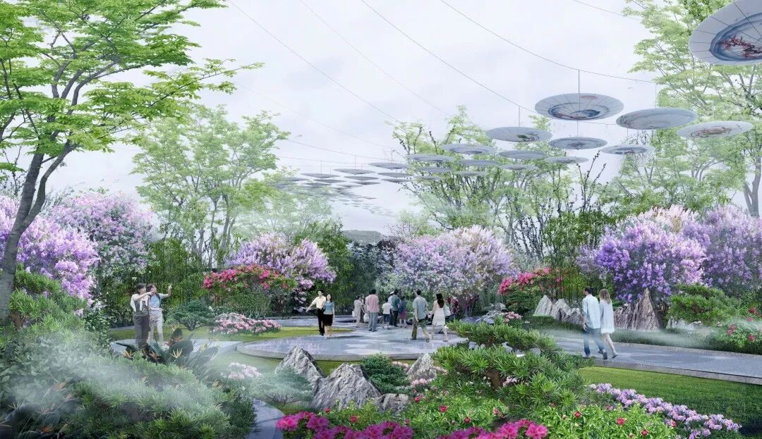 在主会场公区景观设计中,方案充分依托场地自然条件,挖掘川蜀文化元素,融入新颖设计手法与园艺技术,凝练出“天府之眼、神鸟振羽、摩诃涵碧、悬湖漱玉、九州图画、异域园囿、锦云花谷、幽篁蜀居、世园欢会和绛溪畅游”等世园十景。随着建设工作的稳步推进,以上优美的图画与精彩纷呈的展园将在龙泉山下、绛溪河畔次第花开。