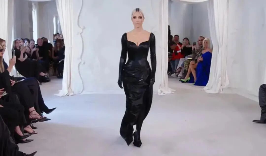 真人秀明星金卡戴珊为巴黎世家高定系列走秀