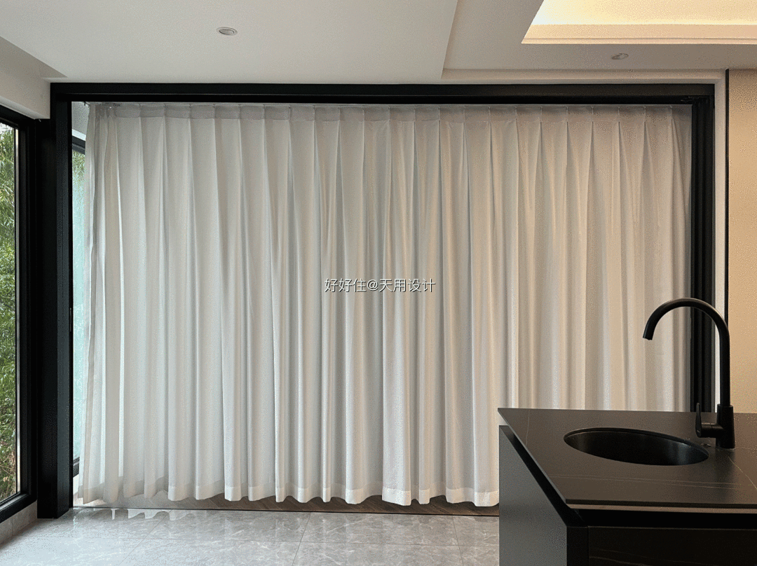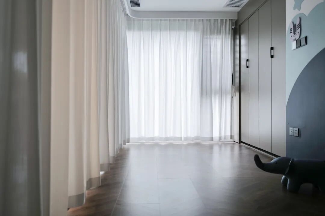 天用设计:家中的智能系统是由男业主与设计师沟通商量后亲自布置的。如果在装修前就决定安装电动窗帘的话,改水电阶段记得在窗帘盒附近预留好插座。