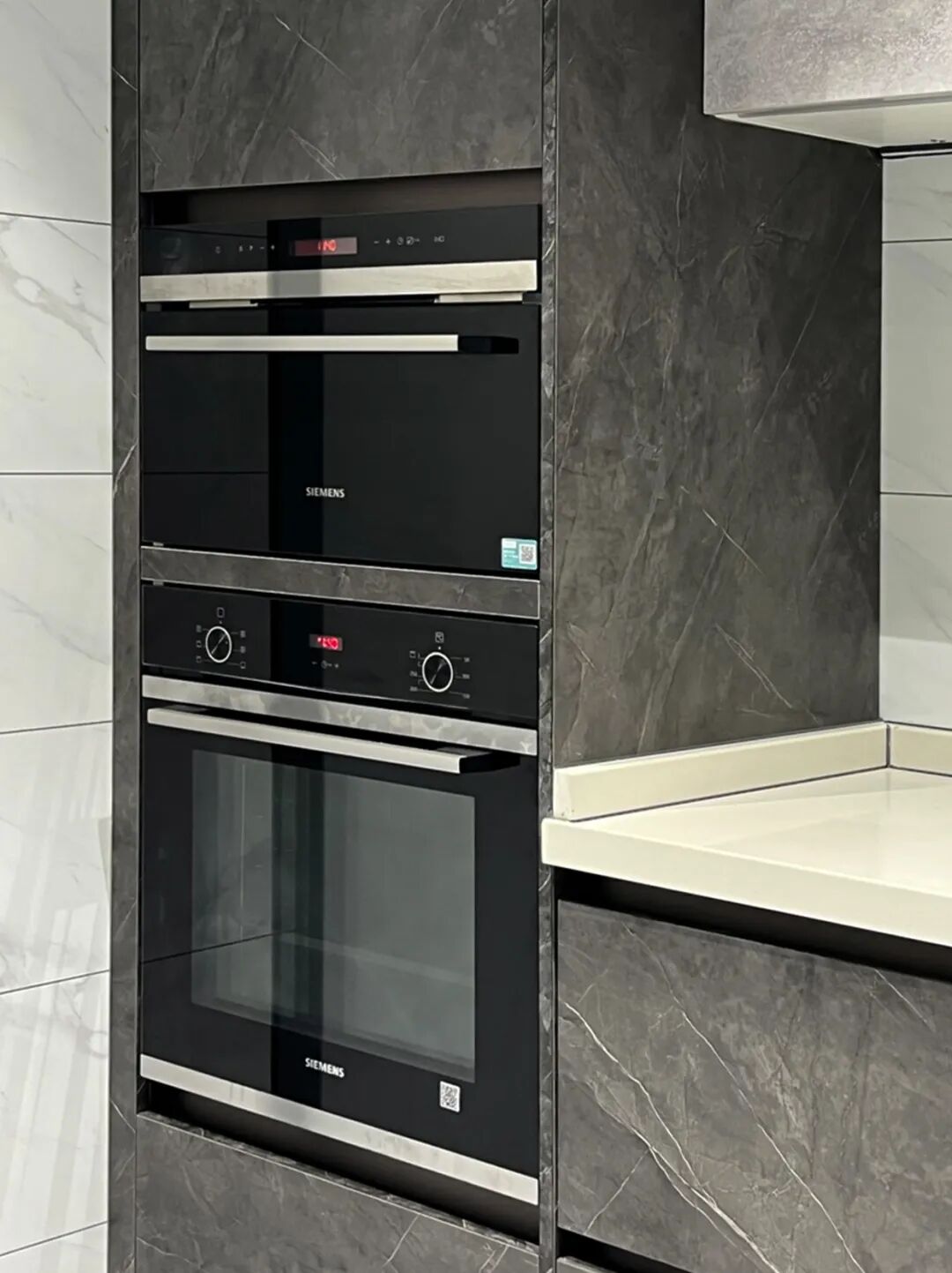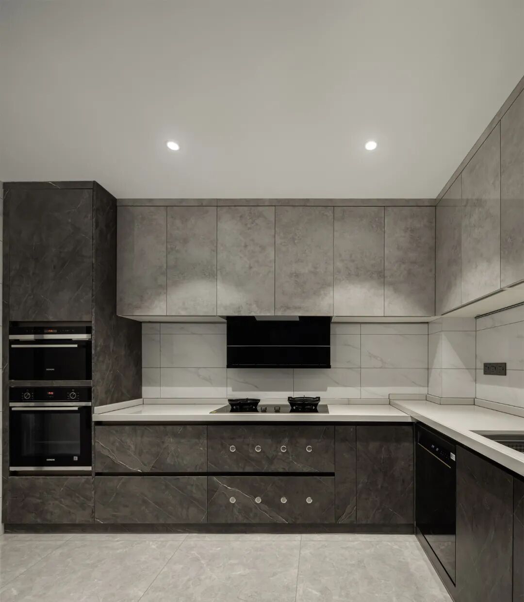 天用设计:灶台油烟机联动设计,灶台打开时油烟机就会自动开启,也可以手一挥就实现开关,智能化的厨房超级方便。