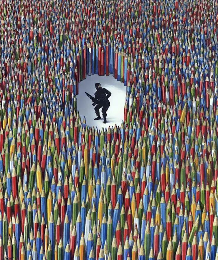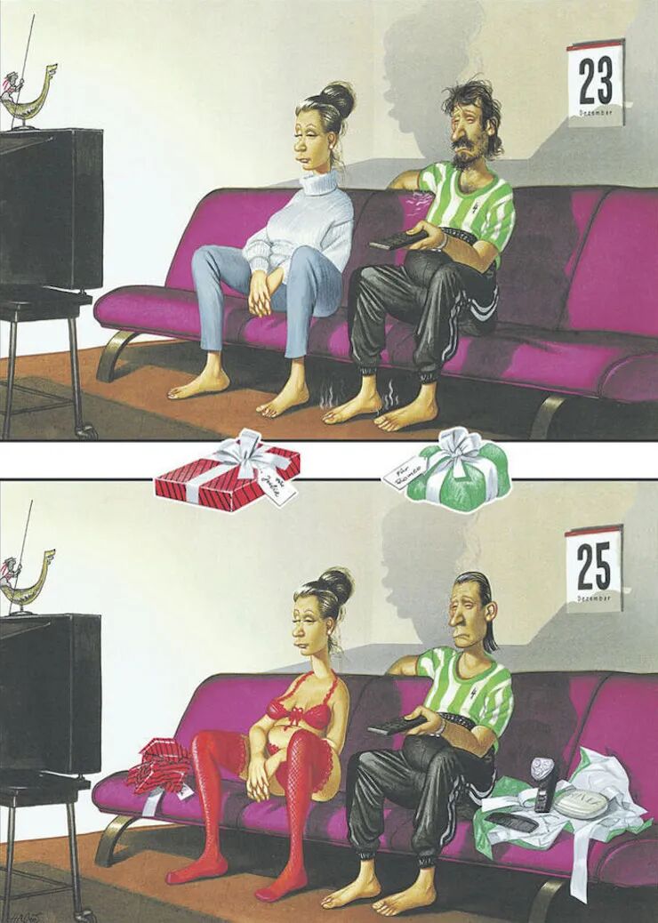 来自奥地利的漫画家 Gerhard Haderer 30 多年来一直在创作讽刺插图,谴责我们当代社会的问题。他一直在描绘我们的当代社会,他目睹了这些年来社会的发展,既有好也有坏。他的插图仍然保持着非常经典的风格,具有非常准确和微妙地谴责社会的问题的品质。