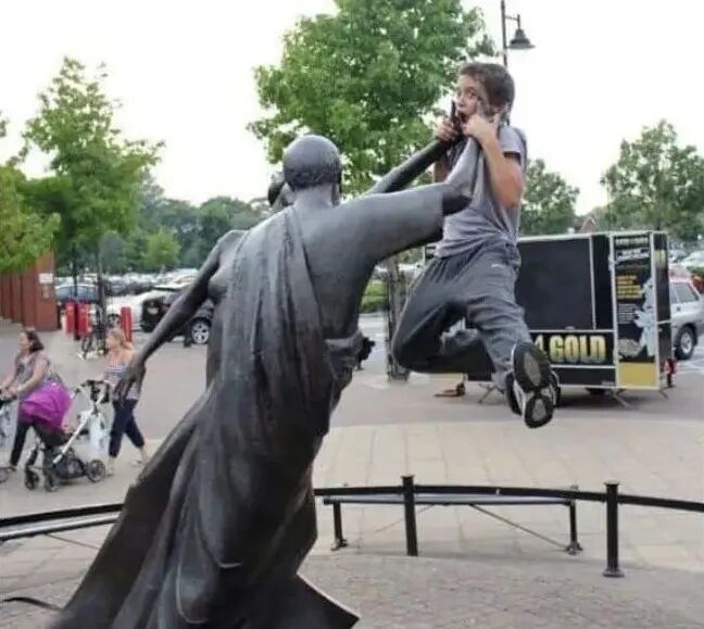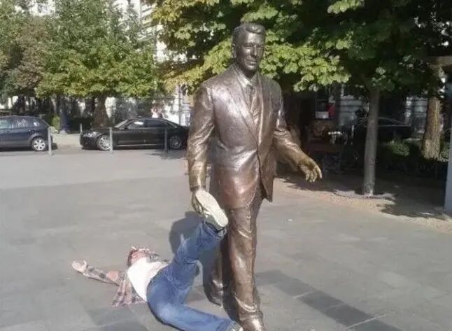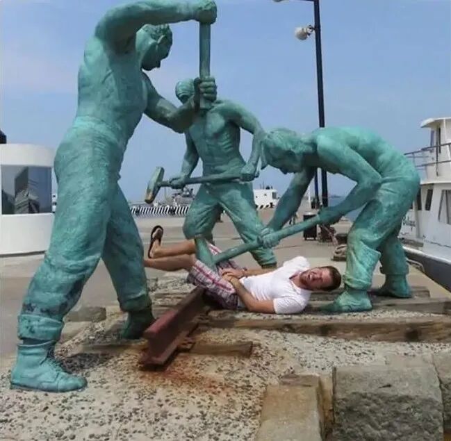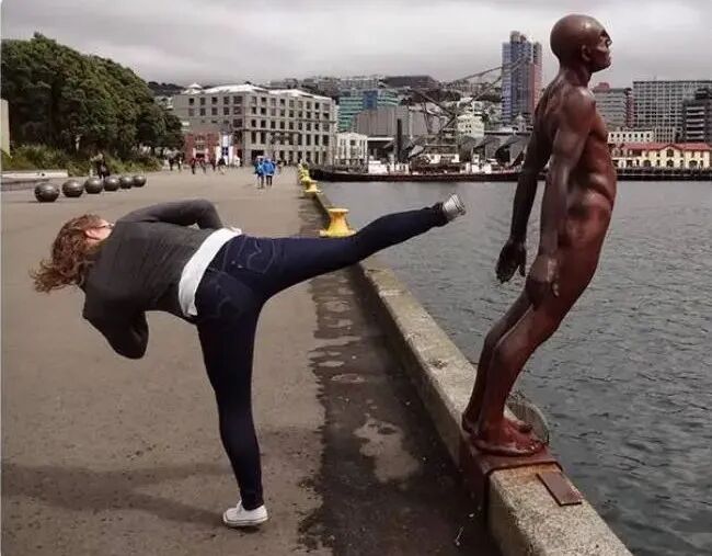 对于这些抚摸和触碰雕塑行为,小绛并不鼓励,因为雕塑作品往往很重,会引发意外情况的发生。远距离与这些雕塑合影比触碰这些雕塑更有意思一些,在最近,又出现了一批喜欢恶搞雕塑的游客。正常情况下,我们在与雕塑合影的时候,都习惯笔直地站立,但这些喜欢恶搞的游客,却利用搞怪的动作,让雕塑变得像是“活”过来一样,配合着他们上演一幕幕好笑的场景。