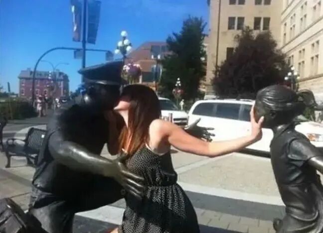 接下来,让我们一起欣赏一下这些游客与雕塑趣味互动的场景吧,相信这些照片会让你的心情变得愉快起来,也会为你和雕塑合影提供一些灵感,不再摆出乏味的游客照。