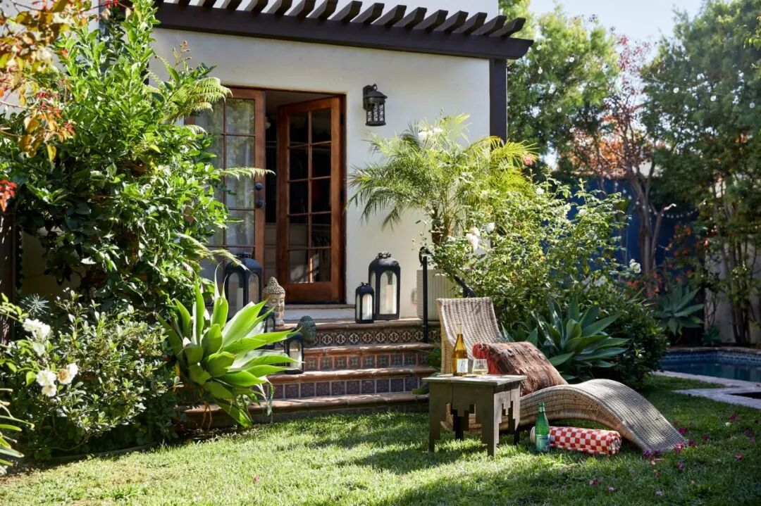院子四周种满了高大的植物,隐秘性极好,茂盛的绿植、艳丽的三角梅让她觉得不是在繁华的好莱坞,而是在南法的乡村度假。