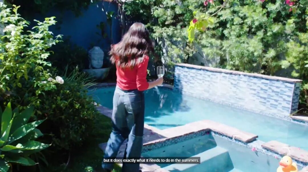 泳池中还划出了一个小泳池,是可以加热的温泉区。在家就能泡温泉的快乐,看到这里,小梦流下了羡慕的泪水……