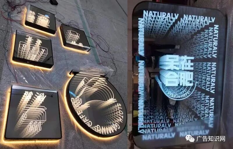 白天是黑色,晚上发白光,以银行门头招牌较为常见。