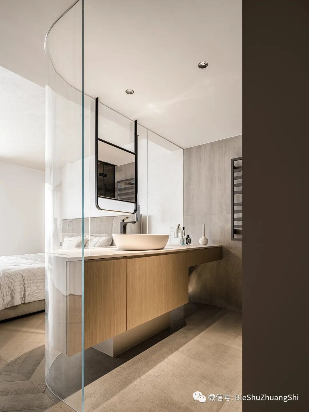 卧室如一页正在翻开的日历,记录着居者的好梦,浪漫光影渲染简约优雅的空间,不必多言,高级感满满,卫浴不止满足实用需求,更让人无限享受高级生活的体验感。