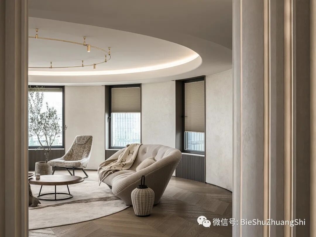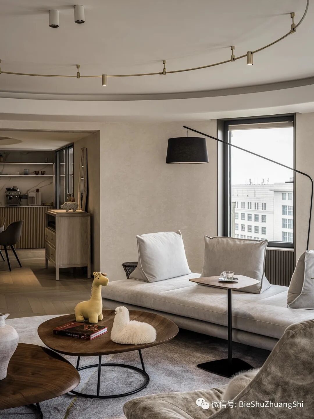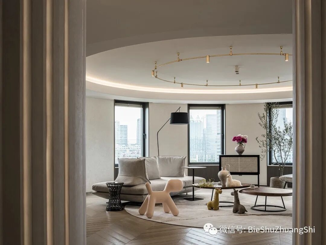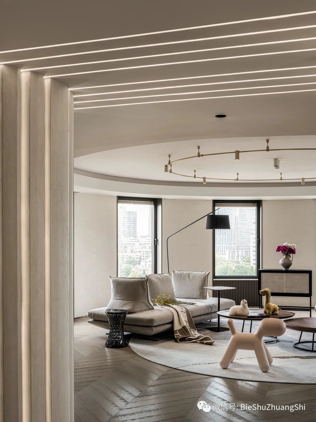 熙攘的都市,需要一个至真至净之所,探寻生活的本真;客厅拥有270°的绝佳视野和六扇窗户的环绕布置,采撷了不同季节和时间为空间带来变幻的表情。