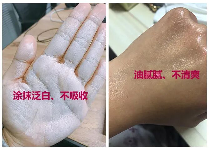 ✘ 要么就是太油太厚,不吸收,猪油一样糊在手上,腻腻的很难受,搞的手机、键盘都油乎乎的,直接劝退;