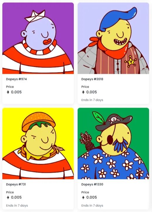 上面这些头像来自一个名为Bored Ape Yacht Club,其于2021年4月30日正式启动,提供一万个独特的卡通灵长类动物迭代,以不可替代的代币(NFT)的形式出售,每个以大约两百美元的以太币加密货币价格出售。