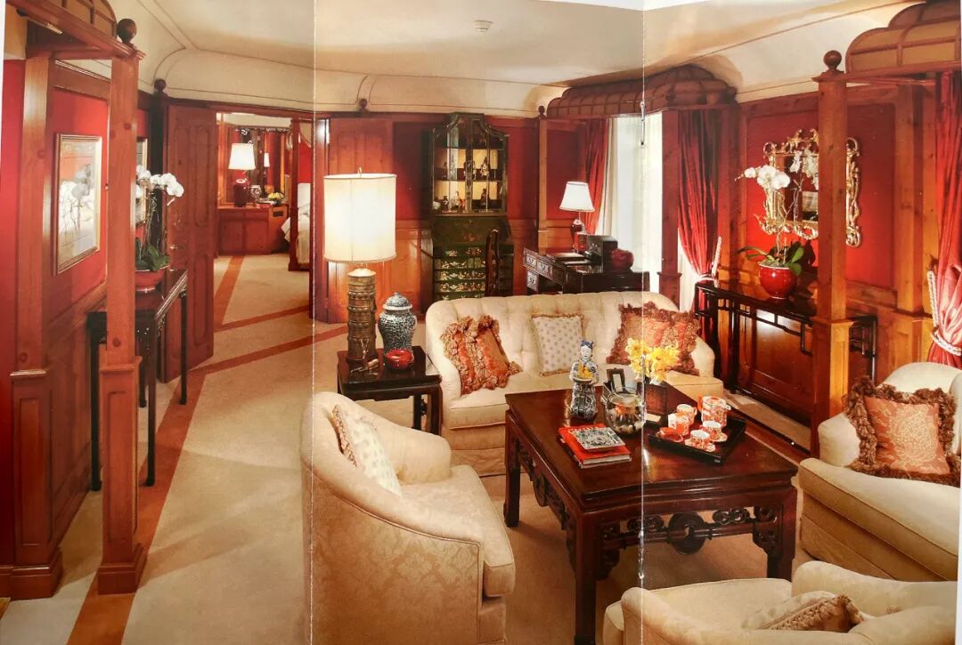 97年时的东方套房是中式宅邸和西式庄园的美妙合体,亭阁式的窗框处理和弧形的顶角线条,平衡了居室的端庄与松弛感,和如今线条简练的套房相比各有千秋。