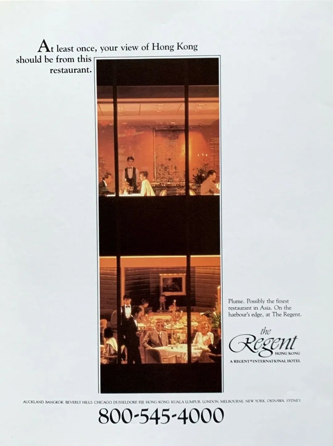 60后的香港老文华至今保持着《广告狂人》式的复古摩登感,古雅但也时髦着。但在97年,文华和如今的复古依然有很大不同。一大区别在外墙,看上图比较,当年的文华是全外挑阳台,如今全被落地窗封住。