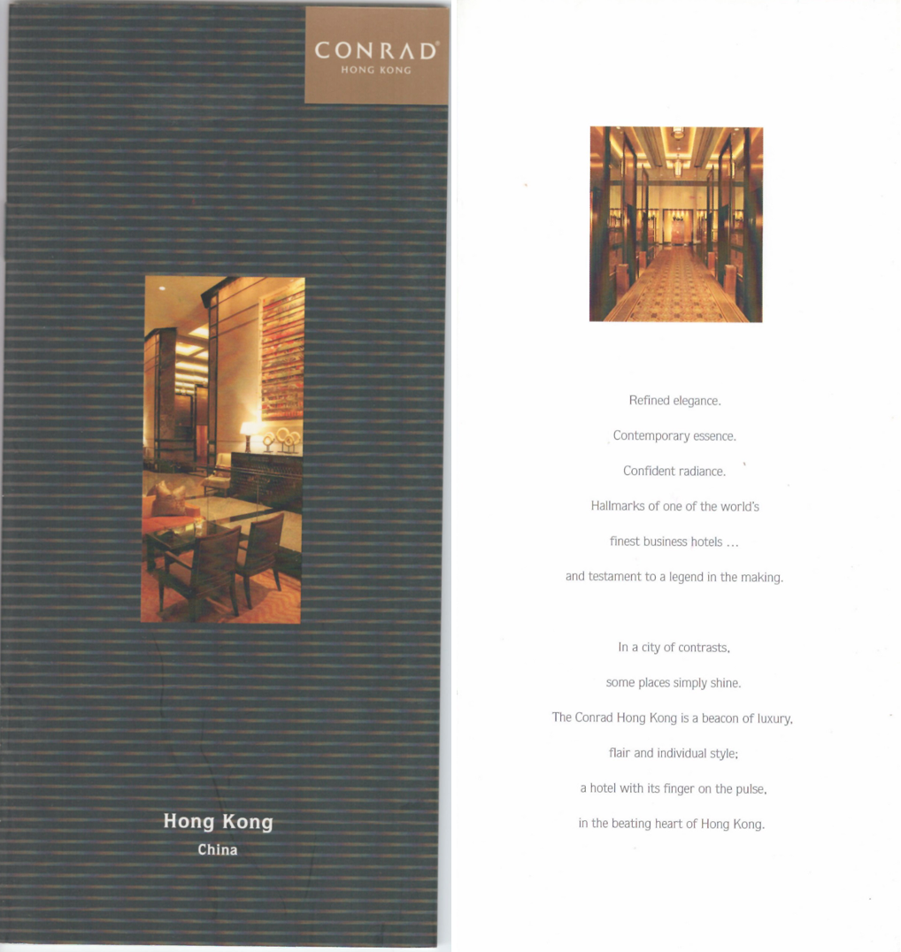 金钟太古是吸引当年的酒店进阶牌的胜地,前有万豪的JW,后有希尔顿的Conrad。妙在Conrad的中文定名——港丽,用在港岛显然比康莱德传神几百倍。