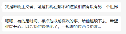 最新文章2023-11-28 25岁模型玩家去世,53岁退休老母自学建模怀念,感动全网:儿子的世界,她想去看看! 今年十月,一家初看平平的二次元模型小店突然爆红。 一夜之间,狂涨十万粉。 幕后制作,却是一位年逾半百的退休阿姨。 更奇的是,几个月前这家店还以大佬手艺娴熟著称,吸引部分小众爱好者。 事到如今,却改头换面,向粉丝问起了小白问题。 如此反差,属实让人摸不着头脑。 探其缘由,却牵扯出一段感人至深的故事。 原店主牛牛二十来岁,大好年纪,骤然离世, 留下这一摊钻研已久的兴趣玩物。 他的母亲在悲痛之余,拾起儿子生前的爱好, 一步步靠近儿子的赛博世界…… 这个故事,让象君为你,细细道来。 儿子的世界太精彩 她想去看看 发现这段故事的,正是在店铺中下单的一位顾客。 顾客去年收藏这家店时,店主可以提供喷涂上色等稍许复杂的代工服务。 可今年再看,却仅能出产没有上色的白模。 顾客摸进店铺主页,才发现店主自陈: 我是这个号主的妈妈,我儿子于5月21日因病离世了…… 顾客去店主喜欢的游戏贴吧,述说了这件事 不止如此,动态里满是一个母亲对儿子的赤诚思念。 她夸耀自豪, 儿子手艺真好,自己何时才能做出如他一般精巧的模型? 她且悲且怨, 大家都想你了,你又为何不肯入我的梦? 她最伤最痛,没有为儿子最后一顿饭多添个菜。 牛牛最后一碗生日长寿面 还有不能再听儿子讲他热爱的东西,自己好进步得再快一些。 起初,任红梅并没有打算继续经营这个店铺。 但在整理儿子遗物时,催货的消息响个不停。 她想,这些孩子都在店里买东西了,总不能不给人家发货。 于是,在儿子好友的帮助下,分辨清楚各种模型、用具,把余下的作品一一售出。 卖光存品,她又发现儿子牛牛清理的瑕疵废件, 上网询问有没有人需要,可低价出售,再次飞速售罄。 尽管这些瑕疵对完美主义者牛牛来说,几乎不能容忍。 大多数买家,却根本不认为哪里有瑕疵。 她向顾客道谢,感谢人家喜欢儿子的作品。 对方却回,要谢的是我们,通过他的改造,我们这些学生才能用很少的钱玩上这些东西。 这是牛牛最得意的索尼随身听 一瞬间,她感觉到儿子乐此不疲的手工活儿是如此富有意义。 她突如其来地决定,留下本打算捐出去的3D打印机, 她要把儿子热爱的事业,继承下来。 因为常做高跟鞋、球鞋等模型组件,王任飞曾戏称自己成了卖鞋的 从零开始学习模型制作,对年过半百的任红梅来说,并不容易。 她不爱动漫网游,不会建模手工, 却愣是通过自己看说明书、询问儿子好友及网友,硬生生入了门。 可问题不断,认错型号,模具开裂,机器故障…… 但有问题,就一件件摸索。 她把型号死死背住,记下模具打印好需二次加固, 机器坏了就找卖家要教程,自己上手维修。 一次巧合,她又发现儿子生前购买的C4D网课,她打算替他学下去。 这对许多年轻人来说都难啃的建模课程,她看起来甘之如饴。 如今,切片打印、更换离型膜、紫外光照这些基础操作,对她来说早已不成问题。 任红梅还说,她退休了,有的是时间去学习。 未来,她还要继续学下去。 走这条道阻且长的路,只为也许有一天,他们娘俩相见时,能多一些共同话题。 从出生开始面对 死亡倒计时 店主大名王任飞,小名牛牛。 在母亲的追忆中,他自小便迷上高达,对模型制作有着持久的爱好。 这也许是因为,他在五岁时,便被下了一封残酷的死亡通知书—— DMD基因病(进行性肌营养不良症),病征表现为骨骼肌萎缩无力,会逐渐丧失行走能力,甚至危及心脏呼吸。 医生判断,他只能活到十七八岁。 这场病彻底改变了他们一家人的生活。 任红梅辞去原本安适的办公室工作,开始跑业务做销售, 以争取快点挣来儿子的医药费。 她不愿儿子白来人世一趟,因旅程太短,没看够世间风景。 所以每一个假期,但凡卡里有钱,就要带牛牛出去走走。 钱多时,走远一点;钱少时,就近一点。 坐标山东临沂的他们,光是首都北京,就不知道去过多少回。 把一生浓缩在十七八年,也算好光景了吧? 只是,他始终没去过自己最向往的威尼斯。 牛牛的遗物,足见他是心思敏锐的人,热爱着音乐、文学…… 不能像别的孩子那样肆意奔跑活动, 常年静坐的王任飞爱上拼装模型,并不奇怪。 长大后,他在工厂做会计,也在办公室里打造自己的工作间比比划划。 在购置了3D打印机后,他的爱好更是一发不可收拾。 他的第一个作品是章鱼,后来各种各样的模型,都陆续诞生。 作品多了,同好也多了,他们鼓动王任飞:手艺这么好,不如去开店吧。 这便是这家小店的由来了。 牛牛做的摩托车模型,怎么看都十分精细…… 在小店的封面上,是一张来自游戏《赛博朋克2077》的截图。 这是他最喜欢的游戏。 小店的封面、简介等,这些儿子的痕迹,任红梅都完整保留。 牛牛离世那天,他照常在工作台前制作模型。 被人发现时,他手中还握着一只赛博朋克高跟鞋的零件。 任红梅回忆那天,总是泣不成声, 她懊悔自己没有记清楚步骤,心肺复苏做得不够标准。 否则……也许呢? 牛牛临走前的工作台面 赛博世界 生与死的相互映射 《赛博朋克2077》中,有一款名为Relic的绯红色芯片。 而牛牛的小店,是全网唯一一家能把这枚芯片制作为实体模型的。 为完美还原游戏细节,牛牛花费不少力气,联系厂家特殊定制贴纸。 接替了儿子制作工作的任红梅,起初对这枚芯片的故事并不知情。 在一次采访过程