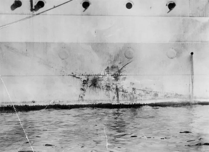 一架日本神风敢死队飞机撞到美国航母。令人难以置信的是船没有损坏船。
