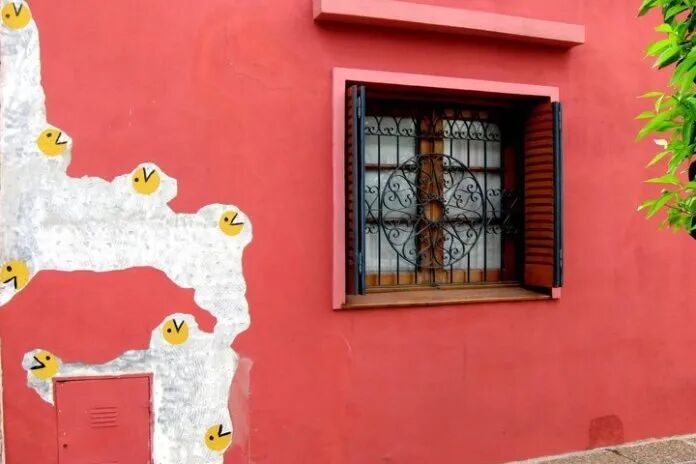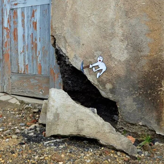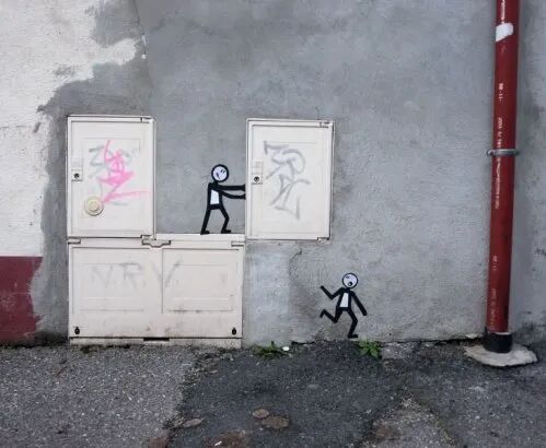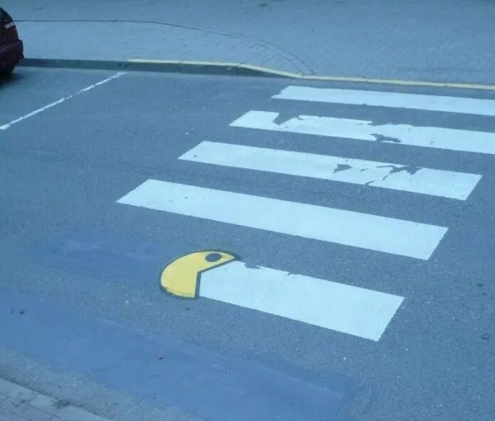 街头艺术发展时间短,却诞生了许多精彩又富有想象力的作品,不少街头艺术家会根据周围的环境,去进行作品的创作,在创作完成后,这个作品与环境可以完美融合到一起,譬如:在一块脱落的墙皮画上几个“吃豆子人”以后,墙壁瞬间变得活泼起来。还有马路上的人行道,随意添加几笔,就会变得生动不少。诸如此类的街头涂鸦,让人看到后,不禁地为这些街头艺术家的想象力拍手叫绝。