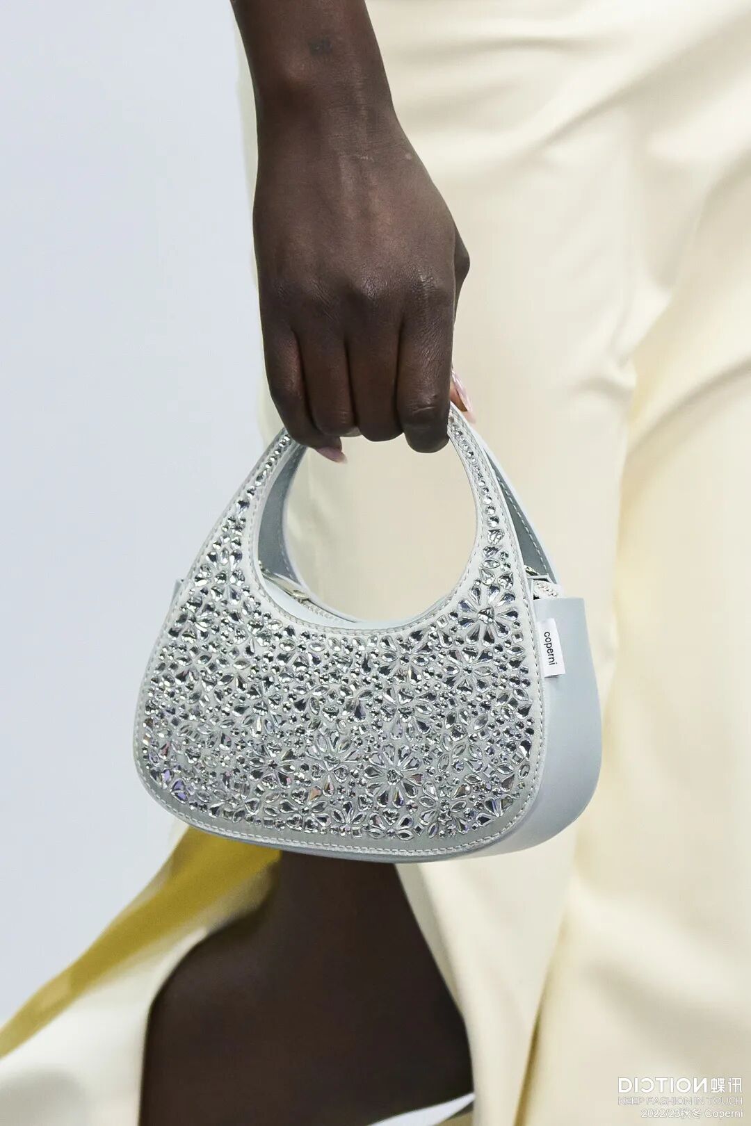 Coperni 与纽约玻璃器皿品牌 Heven 共同研发制造的 Swipe 玻璃包,有透明恶魔角、天蓝色和银制版本,以及更加精致的钻饰、手绘涂鸦包袋。