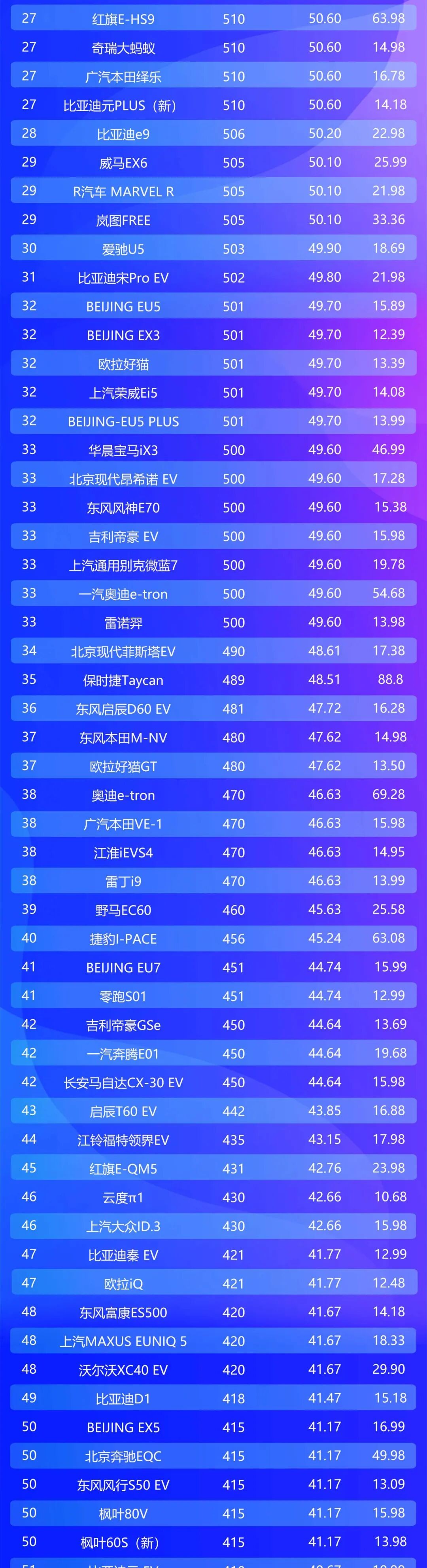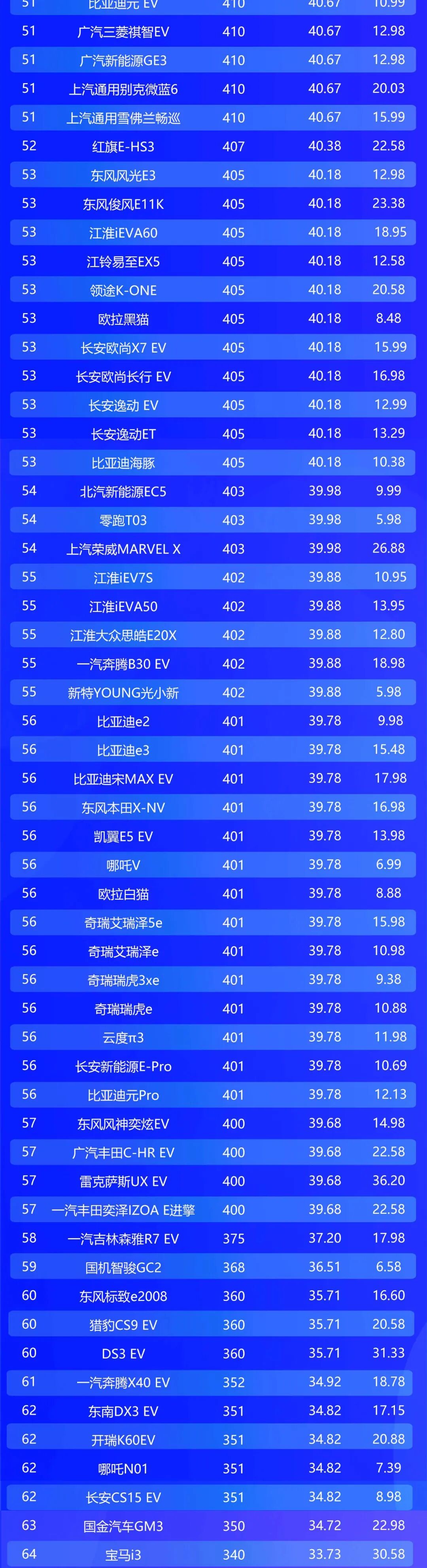 2月电动车续航榜