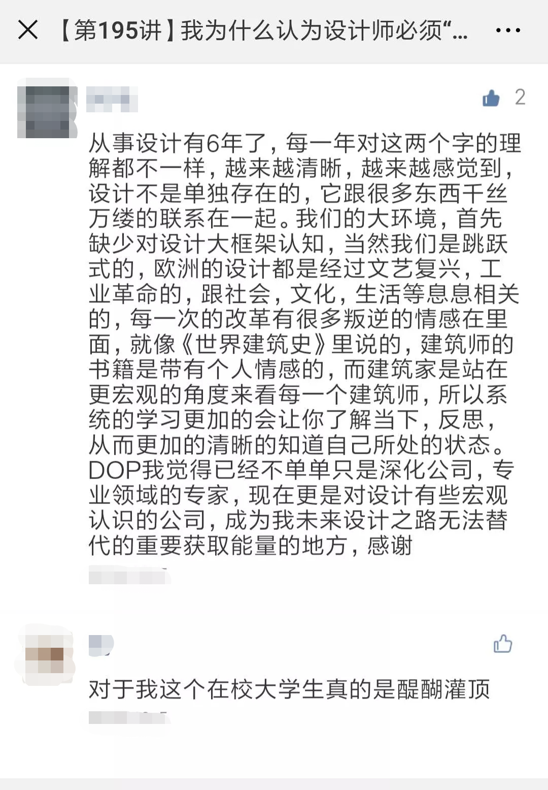 △扫描上方二维码了解/购买设计得到年费会员 除此之外,关于设计得到年费会员,还有这些你一定要知道: 1、设计得到年费会员适合谁? 设计得到年费会员中所包含的课程,覆盖知识面广泛,适合所有室内设计师、设计新人和在校学生。 2、购买后可以获得什么? 10大设计专业知识板块 4000+个设计实战视频教程 4000+个设计相关知识点 1年365天获得一名普通设计师4年的经验 坚持学习,给自己一个专业能力提升的机会! 3、现在购买年费会员有哪些优惠? 1)如果你是第一次购买,现在购买设计得到年费会员,满300可领设计好书1本。 2)如果你已经是设计得到年费会员,会员未过期前续费仅需298元,今日续费还可额外多得60天! 3)活动期间,凡是设计得到年费会员身份,包括:新加入会员、续费会员、年费会员未到期者,均可获得1次社群内抽奖机会(奖品包含:30天年费会员/定制鼠标垫/笔记本礼盒/设计史地图/设计得到500元内任意付费课)。 可凭你的设计得到会员身份/会员消费截图,添加微信dop036(也可扫描下方二维码)进行抽奖。