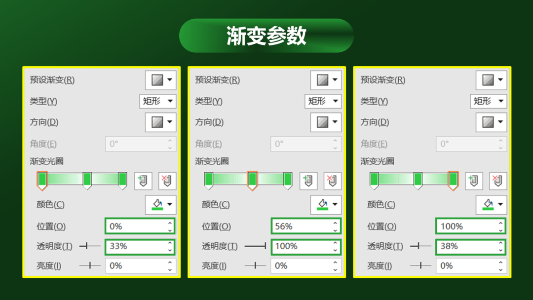 这四个小点的文案比较多。单用线条划分,「模块化」不够明显。我们可以增加同色系的渐变形状承载文案,这样会显得更加规整。