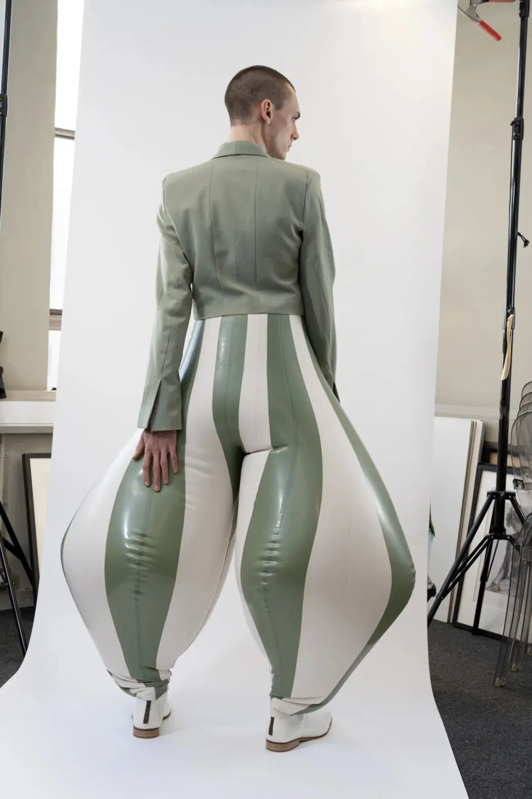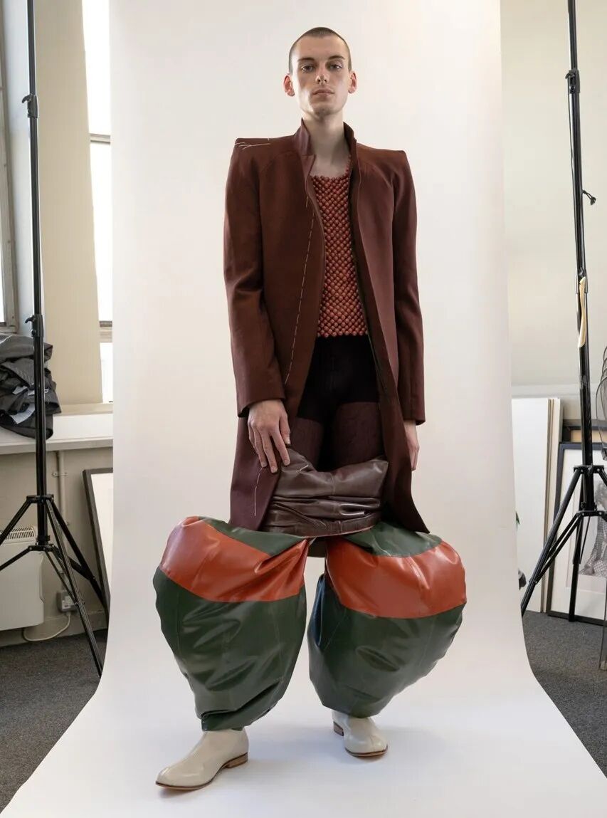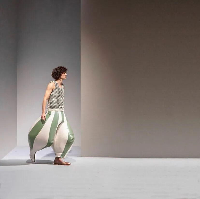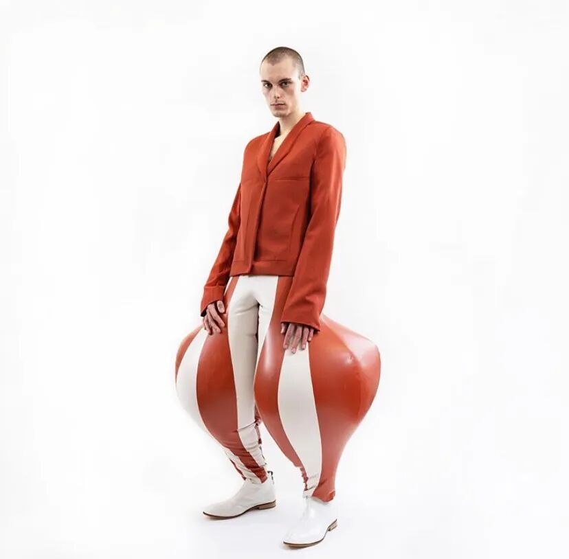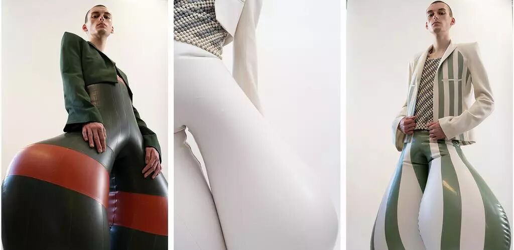 /30个乳胶裁片耗费48个小时制作一条需要充气的长裤?他用”幽默和病态”向主流时尚发起挑战!