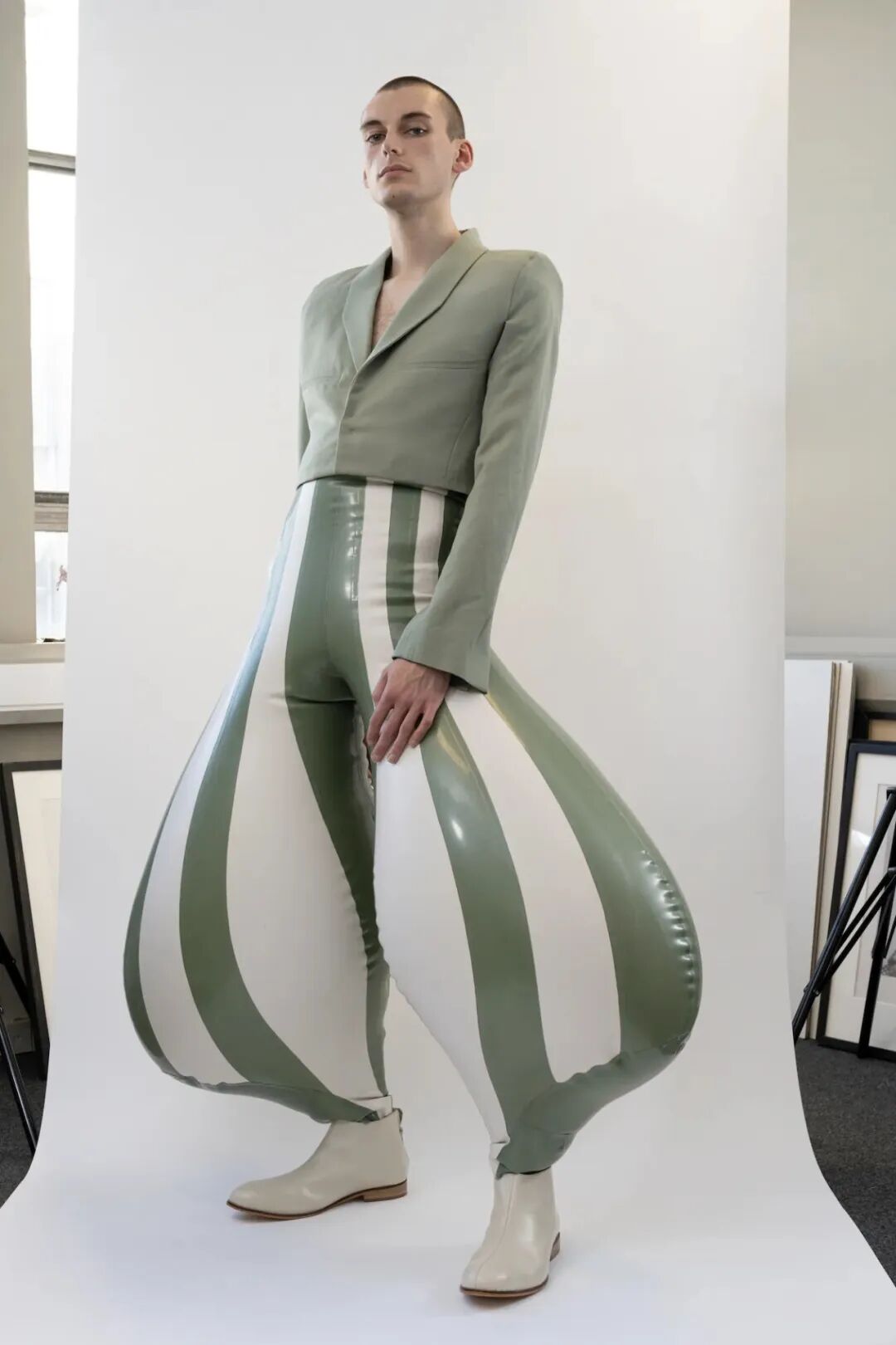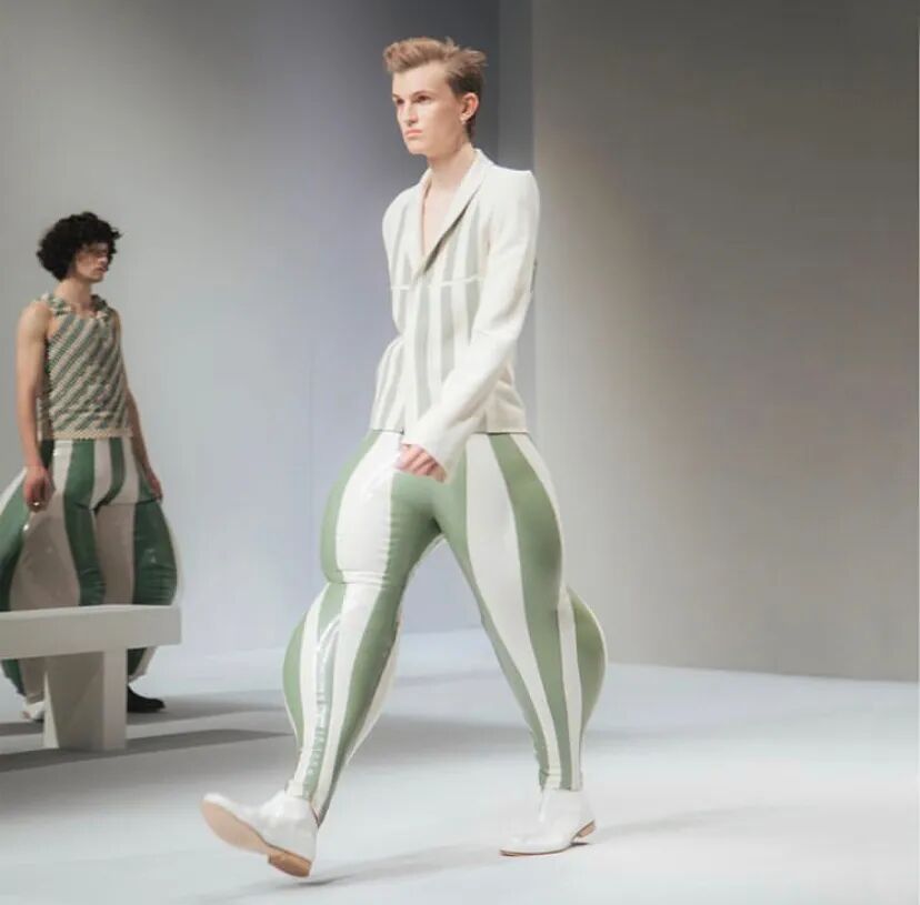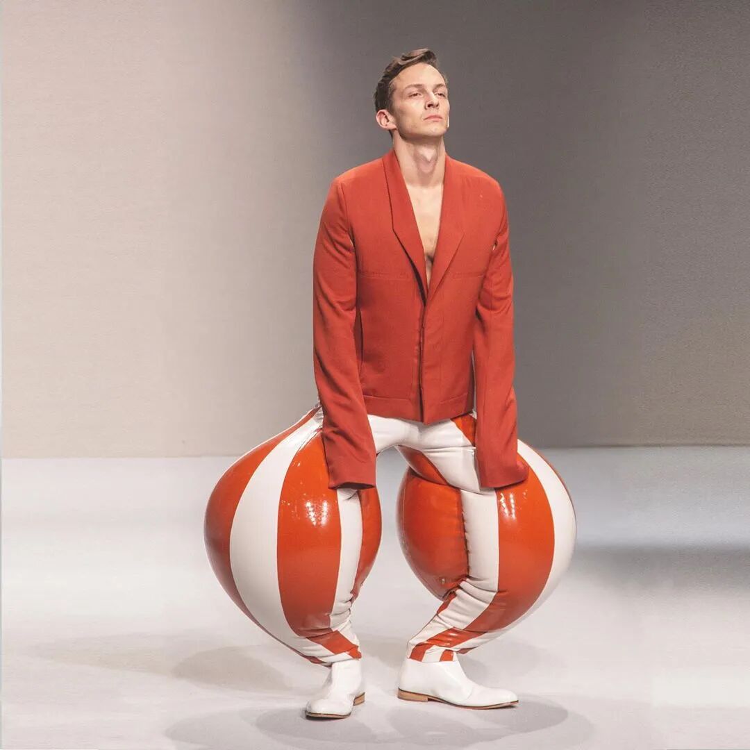 /30个乳胶裁片耗费48个小时制作一条需要充气的长裤?他用”幽默和病态”向主流时尚发起挑战!