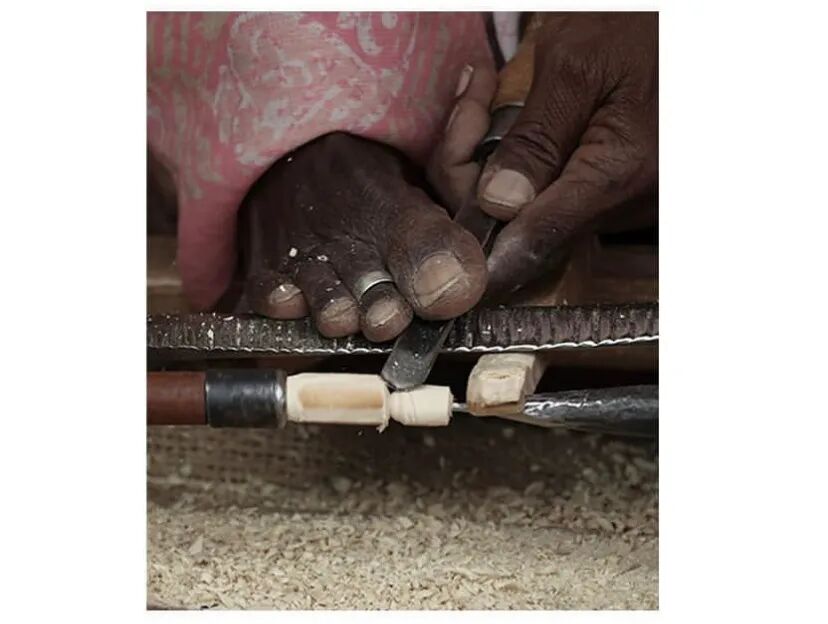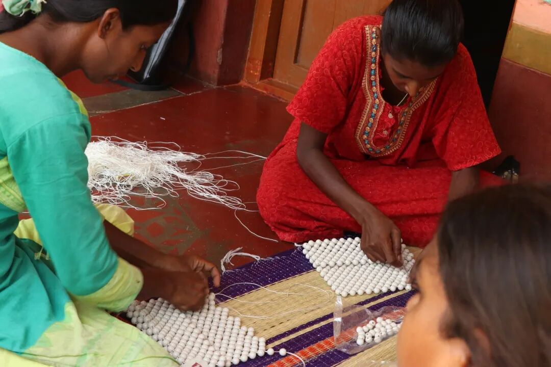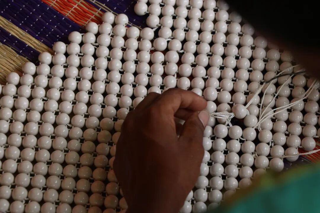 为了制作成品,Harikrishnan在印度Channapatna的一个制作这种传统木珠串的村庄居住了六周,向木工和漆工匠学习并与他们合作。每一刻木珠都是经过纯手工打磨在经历手工串珠。