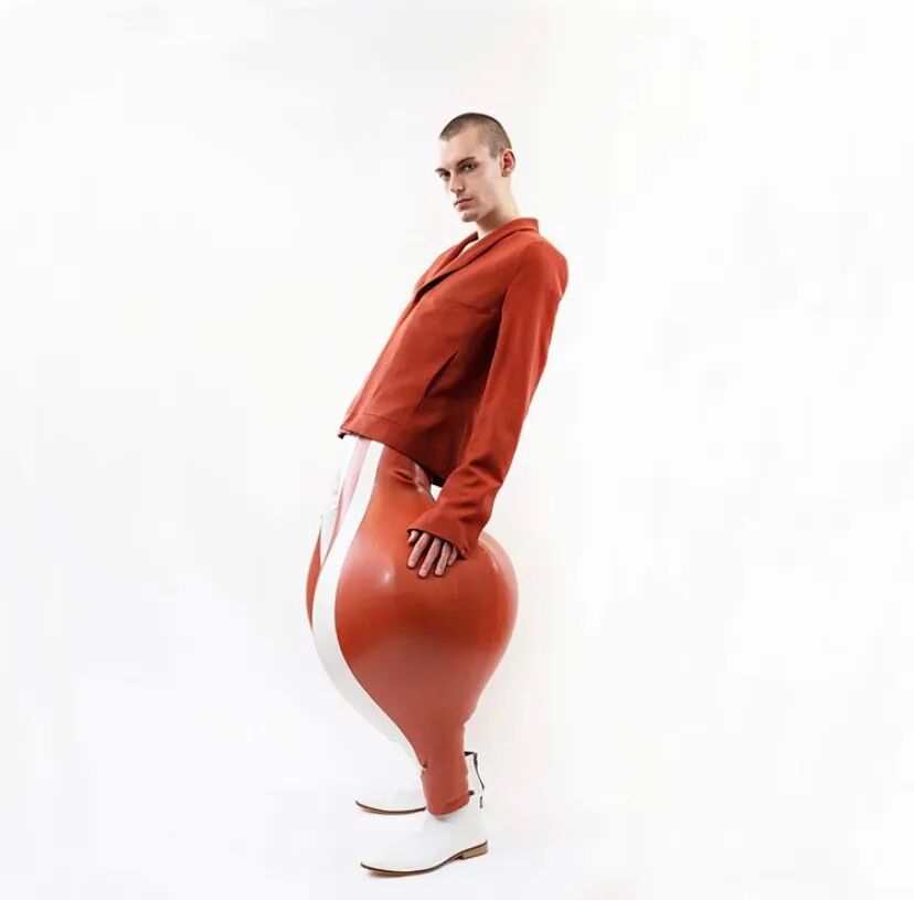30个乳胶裁片耗费48个小时制作一条需要充气的长裤?他用”幽默和病态”向主流时尚发起挑战!