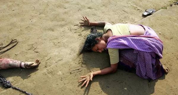 同样是天灾,印度洋海啸过后,泰米尔纳德邦的一名女子面对亲人的尸体悲伤欲绝。由路透社记者阿尔科·达塔(Arko Datta)拍摄。